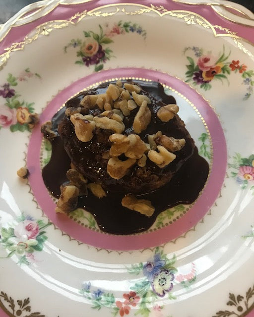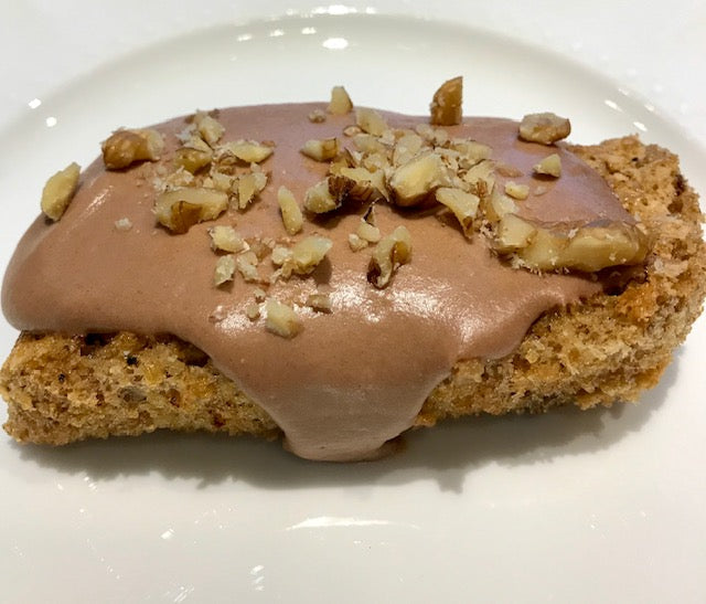 When I had a sudden, intense chocolate craving (memories of too many chocolate Easter eggs over the years), I topped a Susie's Smart Cocoa Bite with chocolate sauce and chopped walnuts and heated it up for 30 seconds in the microwave.